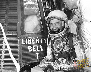 Grissom, der bereits den Helm und die Sauerstoffleitungen